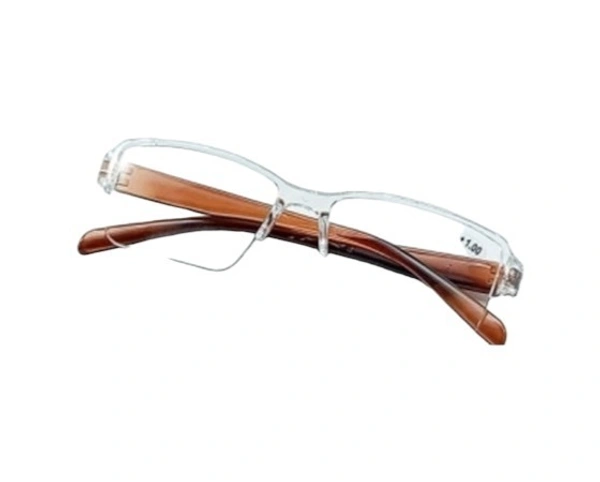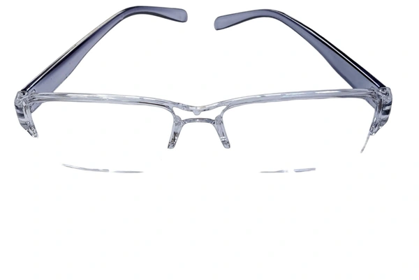 Clear Bifocal Reading Glass for men and women. The upper portion of the glass is plain zero powered and the lower portion is with Reading power of varients +1.00, +1.50, +2.00, +2.50, +3.00. The frame is made out high quality plastic material with different temple colours. The glasses are also made out of high quality plastic material for crystal clarity vision.