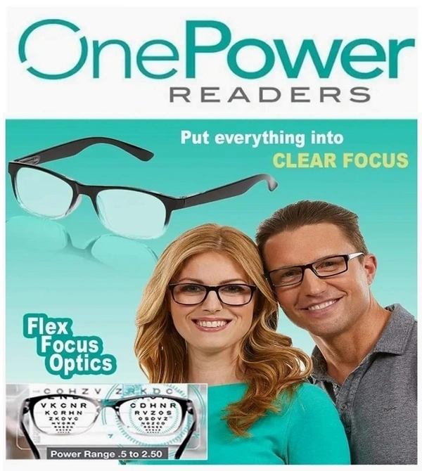 One Power Auto Focus Reading Glasses for Men and women. Clear Focus Auto Adjusting Optic, suitable for all those in need of Reading Power ranging from +0.50 to +2.50